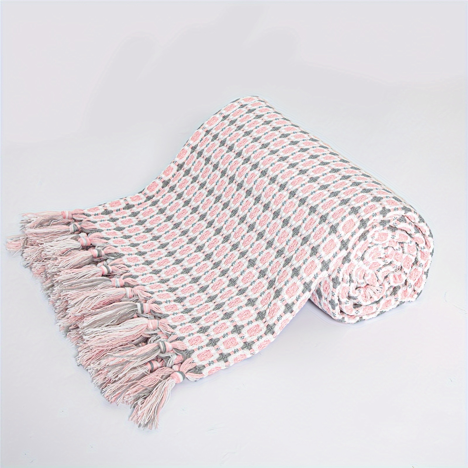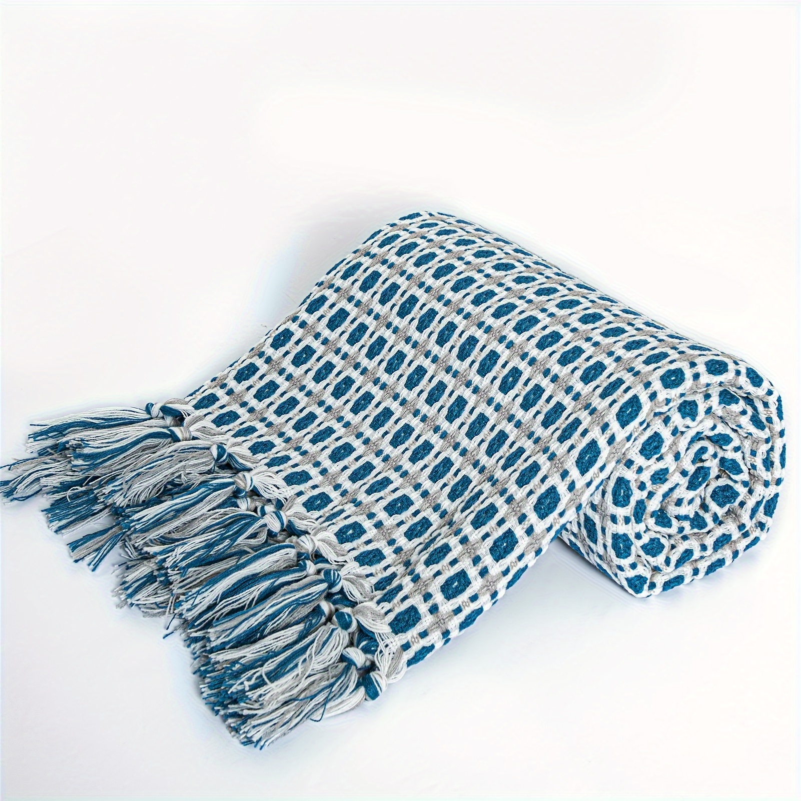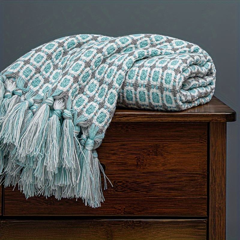 1pc Bohemian Pattern Tassel Blanket, Soft Decorative Knitted Sofa Towel For Comfort And Stress Relax