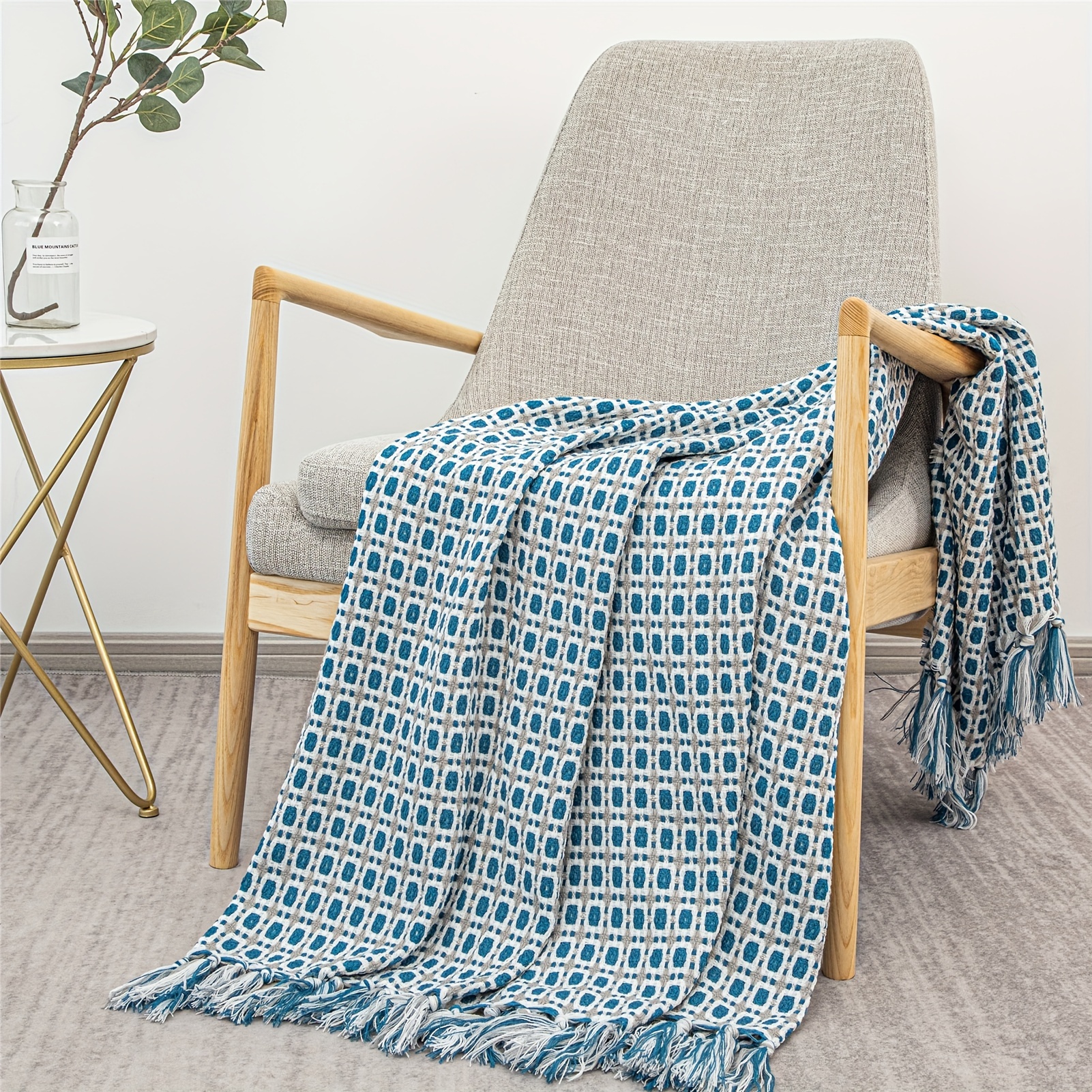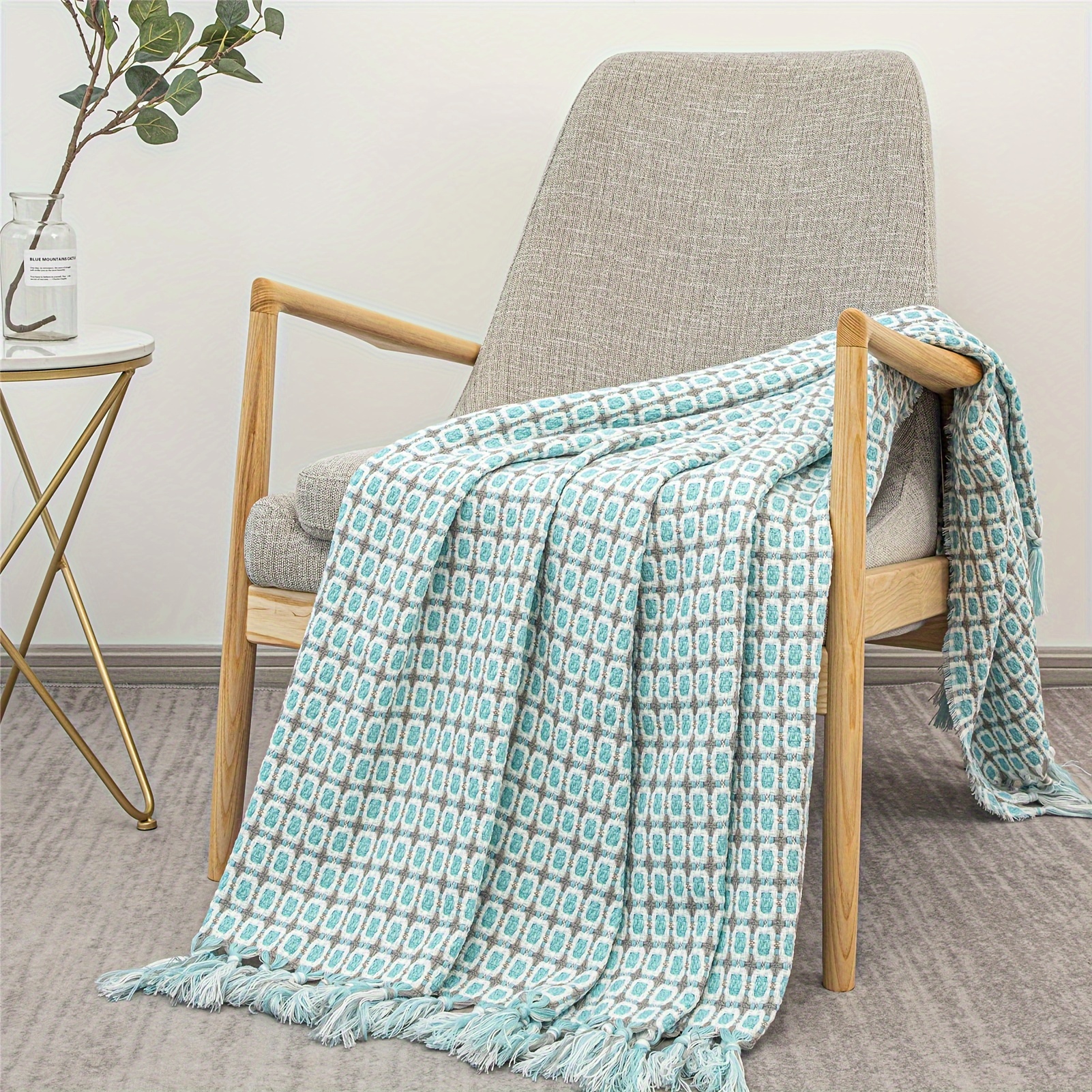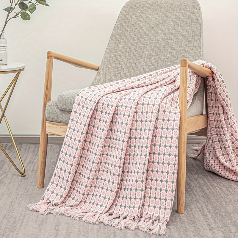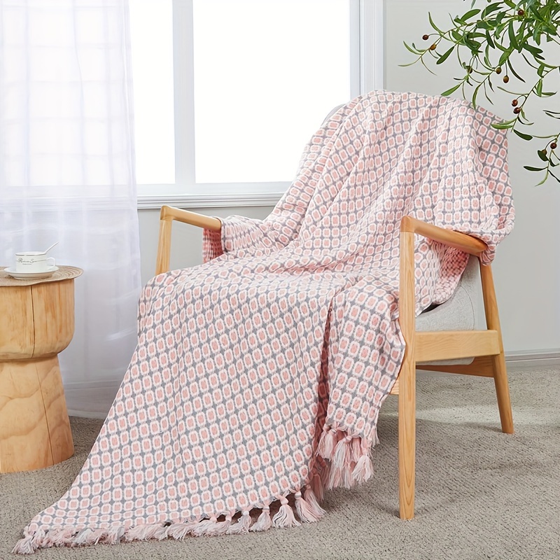 1pc Bohemian Pattern Tassel Blanket, Soft Decorative Knitted Sofa Towel For Comfort And Stress Relax