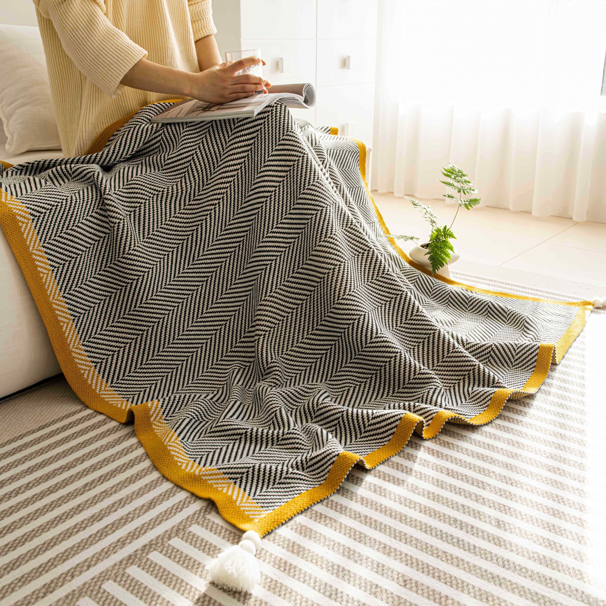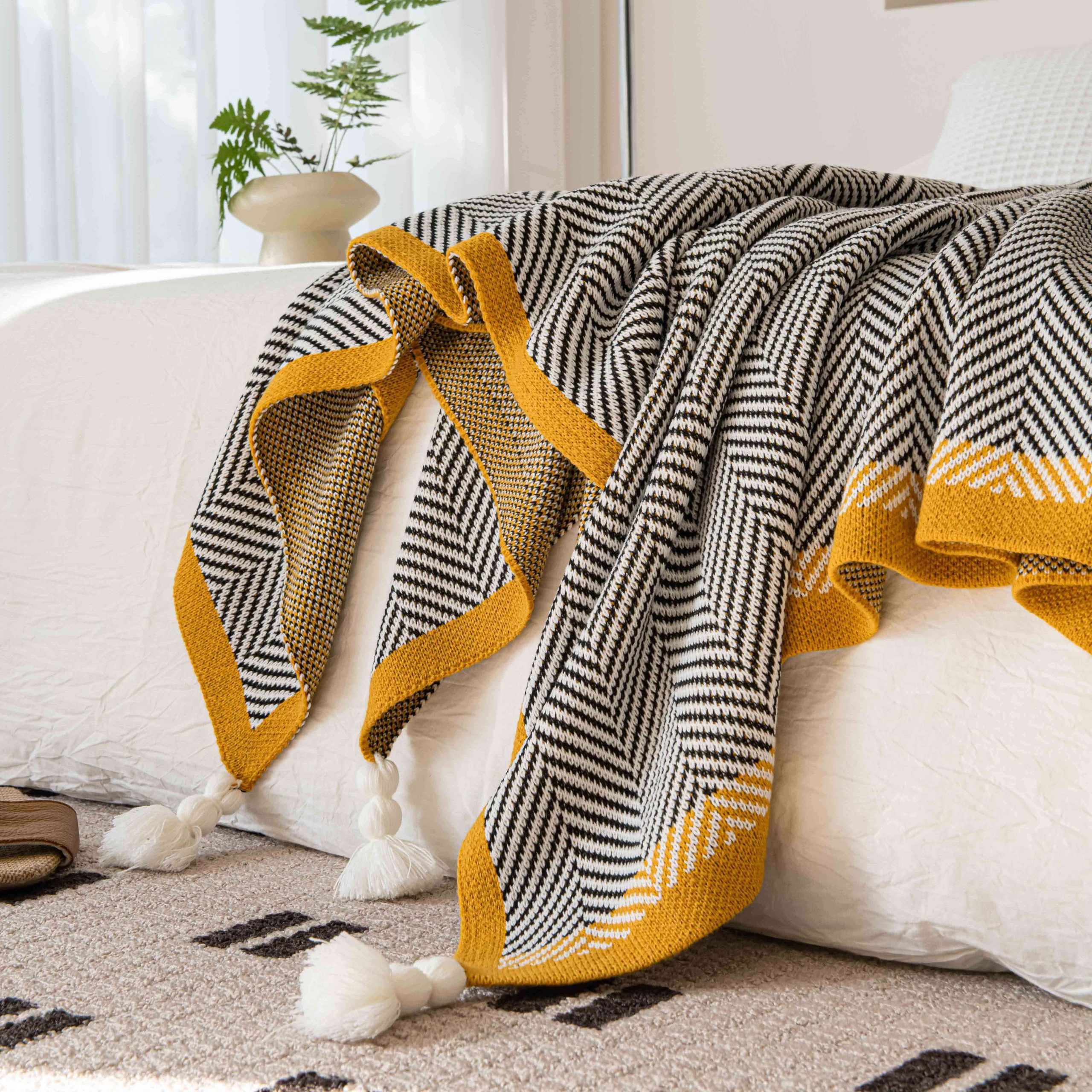 1pc Soft And Comfortable Tassel Blanket, Warm And Comfortable Blanket, Suitable For Sofa Office Bed Living Room Travel Shawl